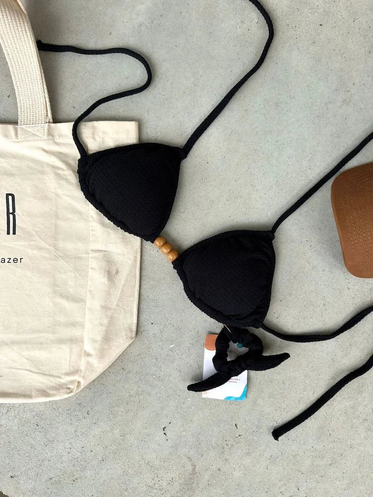 A timeless favorite, our triangle top is beloved for its clean and versatile design. It's perfect for an even tan and easily adjustable for more or less coverage. Equipped with high-quality removable pads that are soft, washable, and water-resistant — they won’t absorb water or lose shape. Choose to wear them with or without pads, depending on what feels best for you. The triangle tops also feature an internal seam, which hides the elastic inside the lining, offering extra comfort and a smooth finish against your skin.