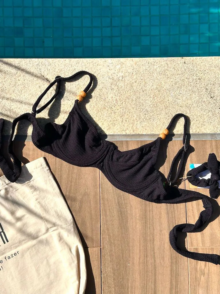 The flounce top brings charm, elegance, and a modern vibe to your beach look. It’s stylish and flattering, making it a great choice for those who want a little flair. Just like our triangle tops, they come with soft removable pads for customizable comfort. The design is made to hug your body just right — providing support while highlighting your natural shape.